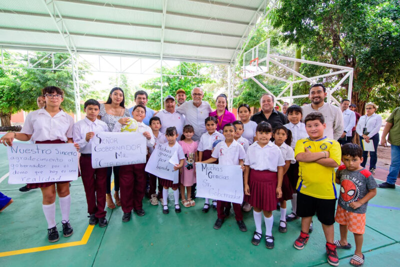 Durante su gira de trabajo, el mandatario estatal visitó la Escuela Primaria Cuauhtémoc de la comunidad San Felipe Aztatán, donde se realizaron obras que fortalecen la formación integral de los estudiantes. Entre ellas, la construcción de un domo escolar, la remodelación de la cancha de usos múltiples y la edificación de un canalón para desagüe pluvial, con el propósito de ofrecer espacios seguros y funcionales para actividades deportivas, cívicas y recreativas.