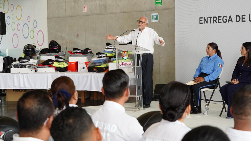 En un acto de fortalecimiento institucional, el gobernador del estado, Miguel Ángel Navarro Quintero, encabezó la entrega de Uniformes y Equipo Táctico a Agentes de la Secretaría de Movilidad, reafirmando su compromiso con la seguridad vial, la prevención de accidentes y la dignificación del servicio público en Nayarit.