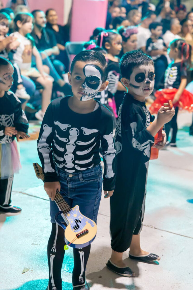 Como parte del impulso permanente a las tradiciones mexicanas, los pequeños participaron con trajes típicos de catrinas y catrines, presentaron bailables y convivieron en un ambiente de respeto y sana convivencia. Con acciones como esta, el Corazón de Nayarit promueve en la niñez la alegría, la creatividad y el desarrollo integral.