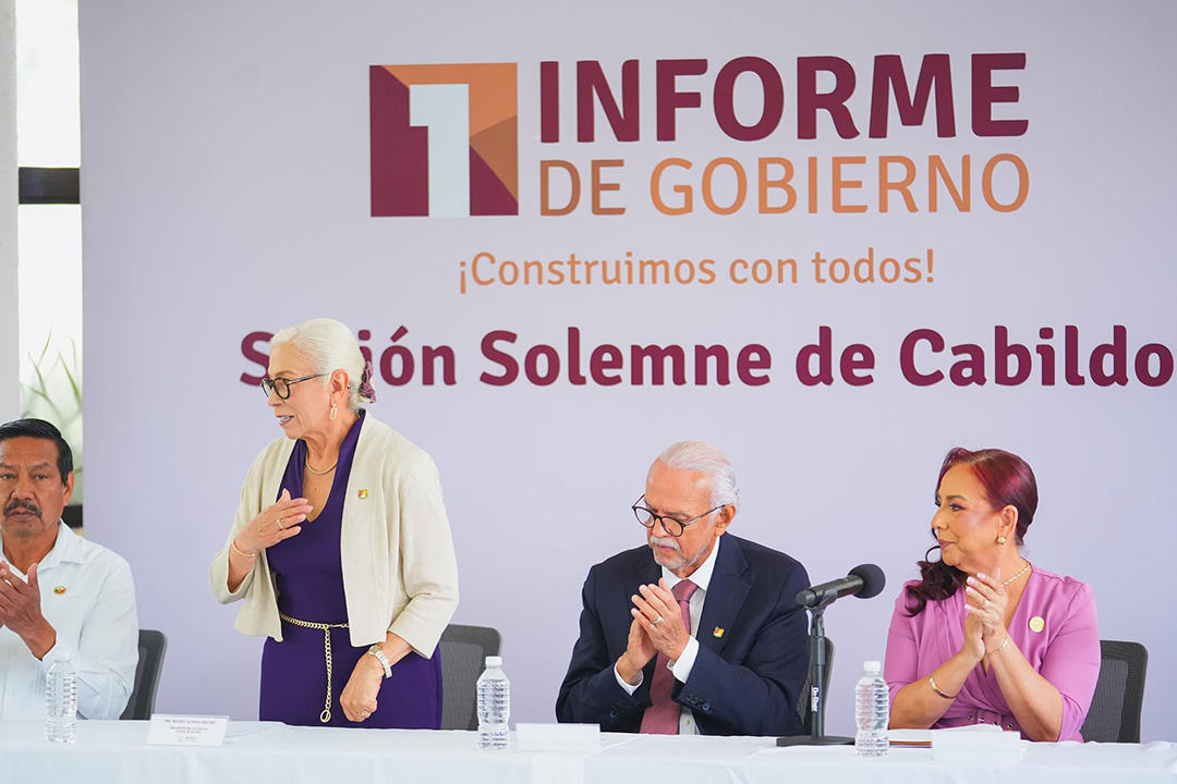 El gobernador del estado, Miguel Ángel Navarro Quintero, junto a su esposa, la presidenta del Sistema DIF Nayarit, doctora Beatriz Estrada Martínez, asistió este lunes en el municipio de Xalisco a la Sesión Solemne de Cabildo, en la que la presidenta municipal, Anabel Margarita Guerrero Benítez, rindió su Primer Informe de Gobierno.