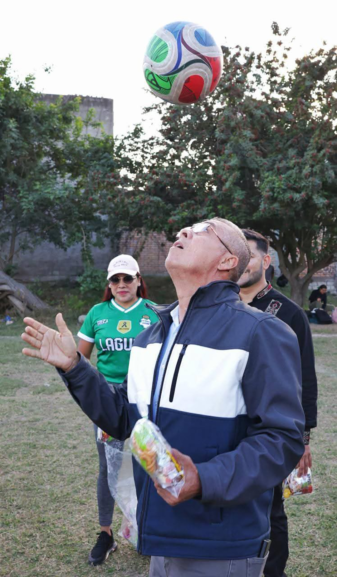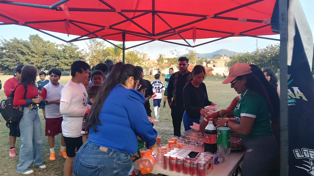 POR OTRO LADO, SURGIÓ LA INICIATIVA DE LLEVAR UNA ROSCA DE REYES a nuestras jugadoras de la Liga Nayarita Pro Flag Football. Entre charlas lo comenté con mi amigo el diputado Luis Enrique Miramontes, quien me dice: Yo se las llevo, hermano, y cumplió. Llegó con tres rosconas y refrescos, lo que nos permitió invitar también a nuestros vecinos que entrenan soccer en el mismo espacio, en el Campo La Laguna.
