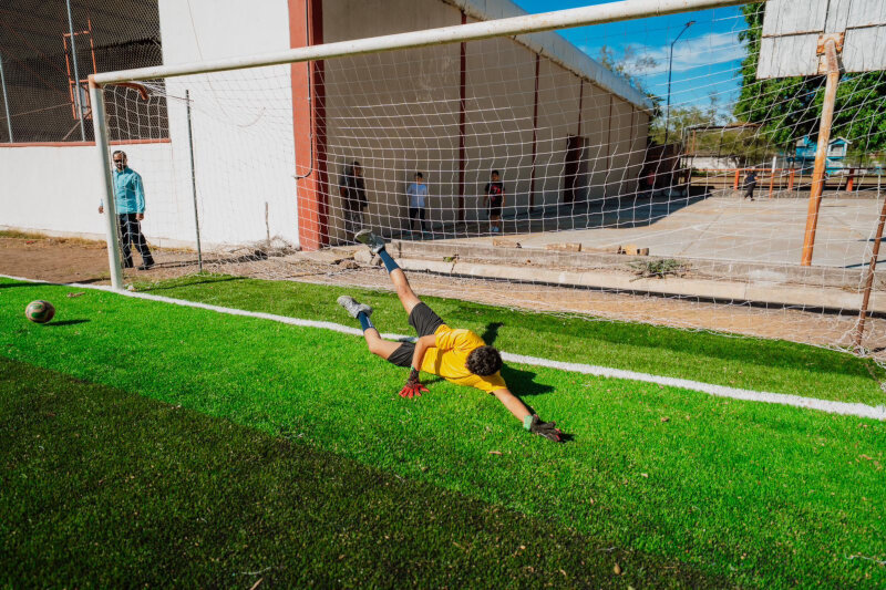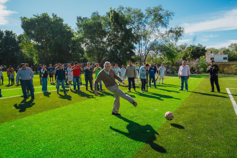Con una inversión superior a los 4 millones de pesos, provenientes de recursos federales a través de la Secretaría de Desarrollo Agrario, Territorial y Urbano (SEDATU), se rehabilitó este espacio con pasto sintético, luminarias solares y balizamiento de las canchas de básquetbol y voleibol, mejorando de manera integral sus condiciones.