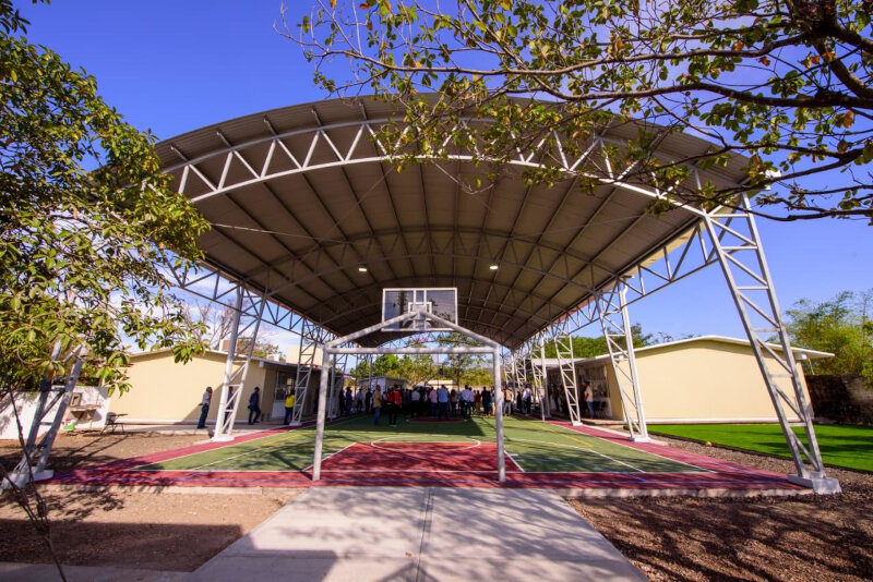 El mandatario estatal señaló que ahora el plantel dispone de domo, cancha de usos múltiples, área de juegos infantiles, desayunador y sistema de drenaje, además de aires acondicionados, sillas y escritorios, lo que brindará seguridad a los alumnos y tranquilidad a madres y padres de familia.