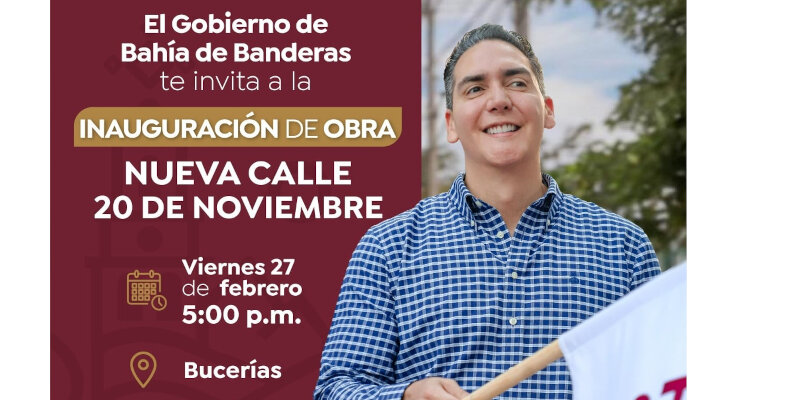 El Gobierno de Bahía de Banderas invita a la ciudadanía a la inauguración de la nueva calle Higuera Blanca, en la localidad Emiliano Zapata, este miércoles 25 de febrero en punto de las 5:00 p.m.