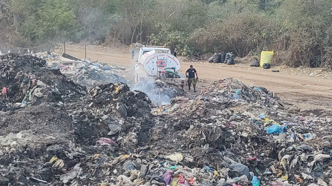 El Gobierno del Estado, a través de la Secretaría de Seguridad y Protección Ciudadana, mantiene acciones permanentes para la mitigación y control del incendio registrado en el relleno sanitario del municipio de Acaponeta, en coordinación con la Comisión Forestal de Nayarit y las unidades municipales de Protección Civil de Acaponeta, Tecuala y Huajicori.