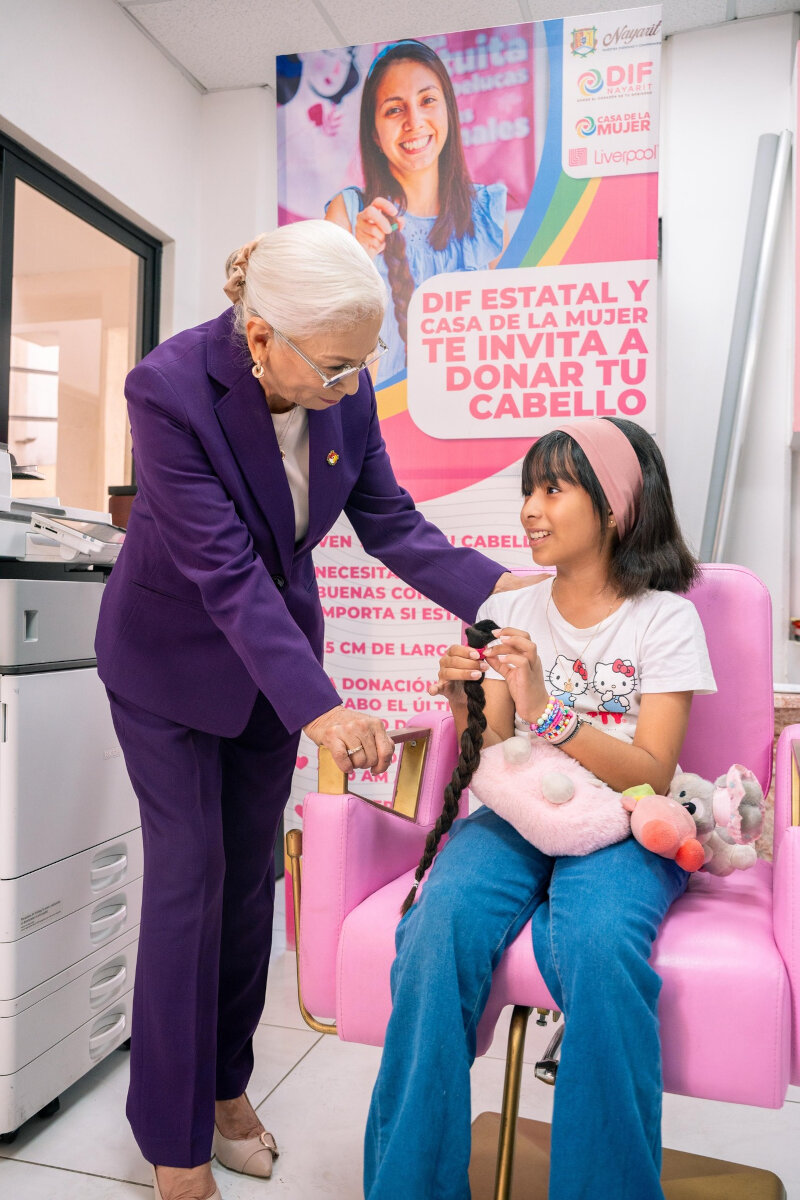 Donar cabello, contribuye a brindar esperanza y fortalecer la autoestima de niñas y mujeres que, día con día, enfrentan el proceso de recuperación contra el cáncer. Por ello, la presidenta del Sistema DIF Nayarit, doctora Beatriz Estrada Martínez, mantiene su compromiso con la campaña permanente de donación de cabello para la elaboración de pelucas oncológicas artesanales.