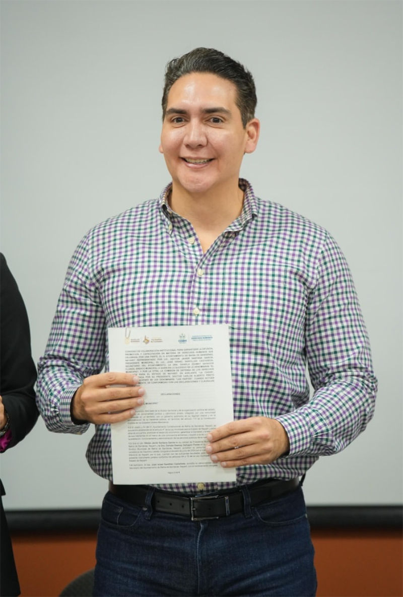 El H. XII Ayuntamiento de Bahía de Banderas formalizó la firma de un convenio de colaboración con la Comisión de Defensa de los Derechos Humanos para el Estado de Nayarit, con el objetivo de fortalecer la atención, promoción y protección de los derechos fundamentales en el ámbito municipal.