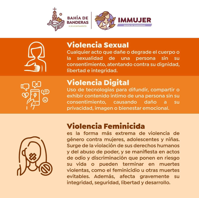Con el objetivo de fortalecer la cultura de la prevención y la conciencia social, el Gobierno Municipal de Bahía de Banderas, a través del Instituto Municipal de la Mujer, hizo un llamado a la ciudadanía para reconocer y mantenerse alerta ante los distintos tipos de violencia.