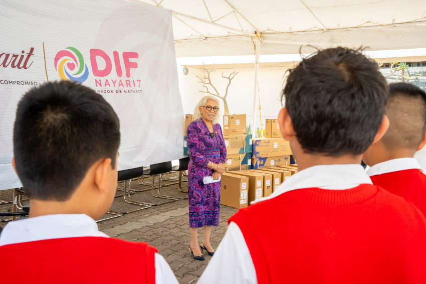 Generar entornos educativos con calidad y calidez es una prioridad para la presidenta del Sistema DIF Nayarit, doctora Beatriz Estrada Martínez, quien encabezó la entrega de apoyos en especie a la escuela primaria Ignacio Manuel Altamirano, de Ixtlán del Río, y a la secundaria Justo Sierra, de Tepic.