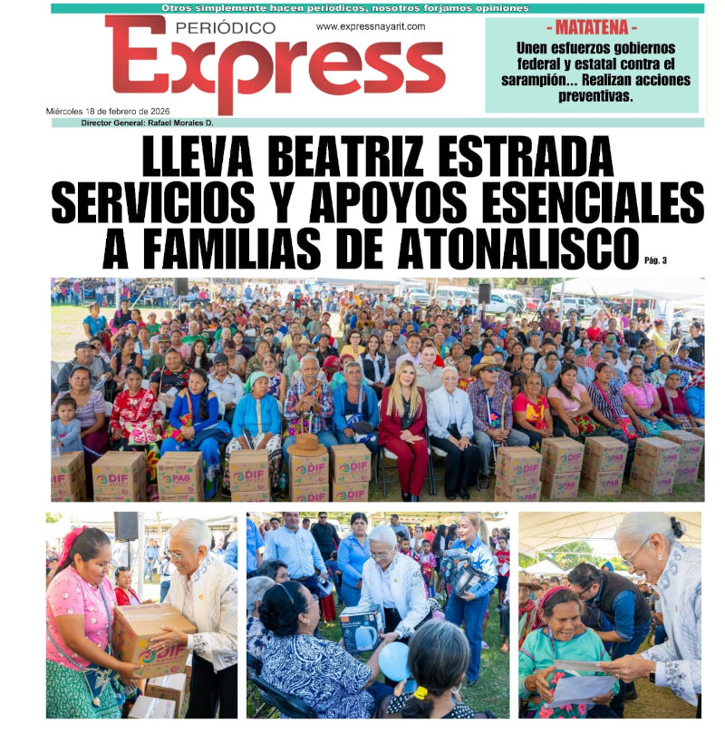 Tepic//18 de febrero de 2026.-El gobernador del estado, Miguel Ángel Navarro Quintero, informó que durante la sesión de la Mesa Estatal de Construcción de Paz y Seguridad sostuvo Leer Más...