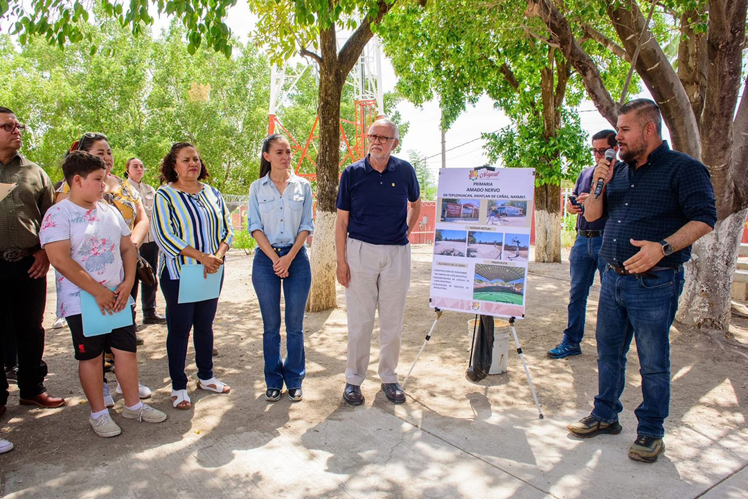 El gobernador de Nayarit, Miguel Ángel Navarro Quintero, dio inicio a los trabajos de construcción de techumbre y rehabilitación de la cancha de usos múltiples en la Escuela Primaria Amado Nervo de Tepuzhuacán, municipio de Amatlán de Cañas, con una inversión de 2.5 millones de pesos. Además, el mandatario nayarita se comprometió a construir un desayunador integral y dotar de mobiliario y equipo tecnológico.