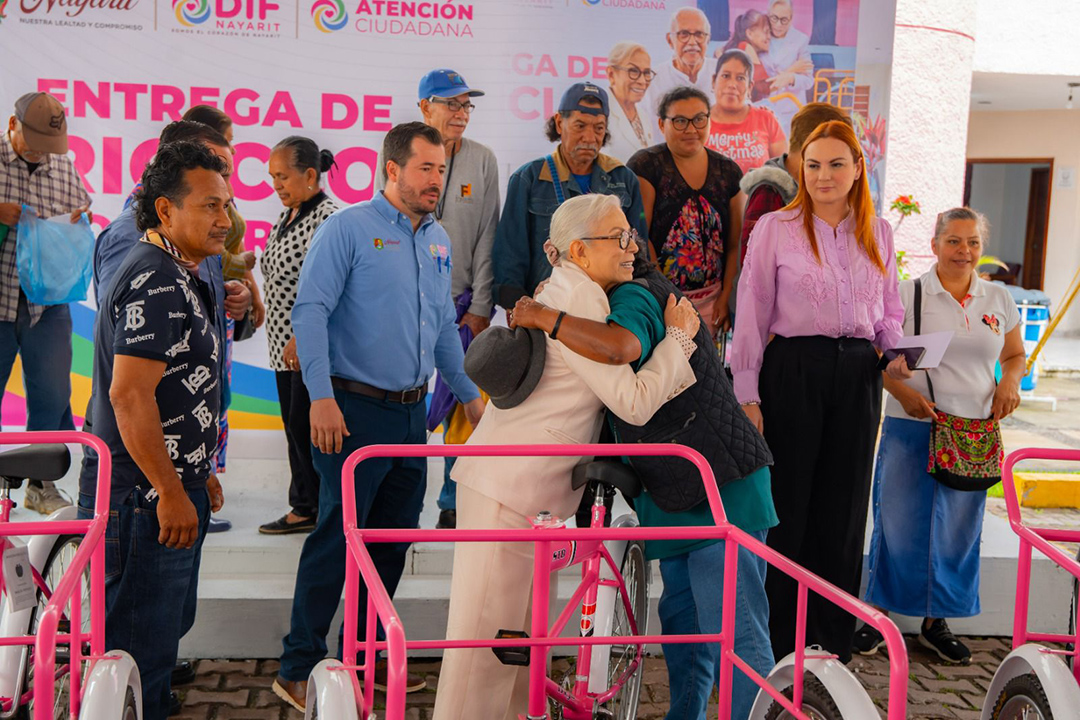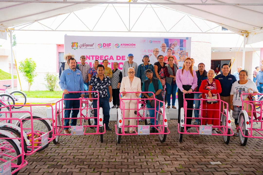 Impulsar el desarrollo y mejorar el nivel de vida de los grupos prioritarios del estado es una tarea permanente para la presidenta del Sistema DIF Nayarit, doctora Beatriz Estrada Martínez, quien encabezó la entrega gratuita de 53 triciclos de carga a igual número de familias de los municipios de Tepic, Xalisco, San Blas y Compostela.