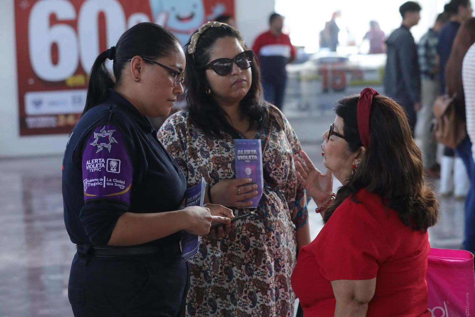 La presidenta municipal de Tepic, Ing. Geraldine Ponce , acudió a la instalación del primer módulo de atención e información de Espacio Violeta en la Plaza de Álica, como parte de una estrategia del Gobierno de Tepic para prevenir y erradicar la violencia contra las mujeres.