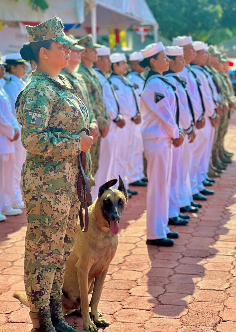 También se entregaron ascensos a personal de la Secretaría de Marina Armada de México por sus años de servicio y disciplina, así como un reconocimiento especial al elemento canino Galo por casi ocho años de labor. La distinción fue otorgada por la teniente de fragata del Servicio de Trabajo Social Naval, Ángela Gabriela Torres.