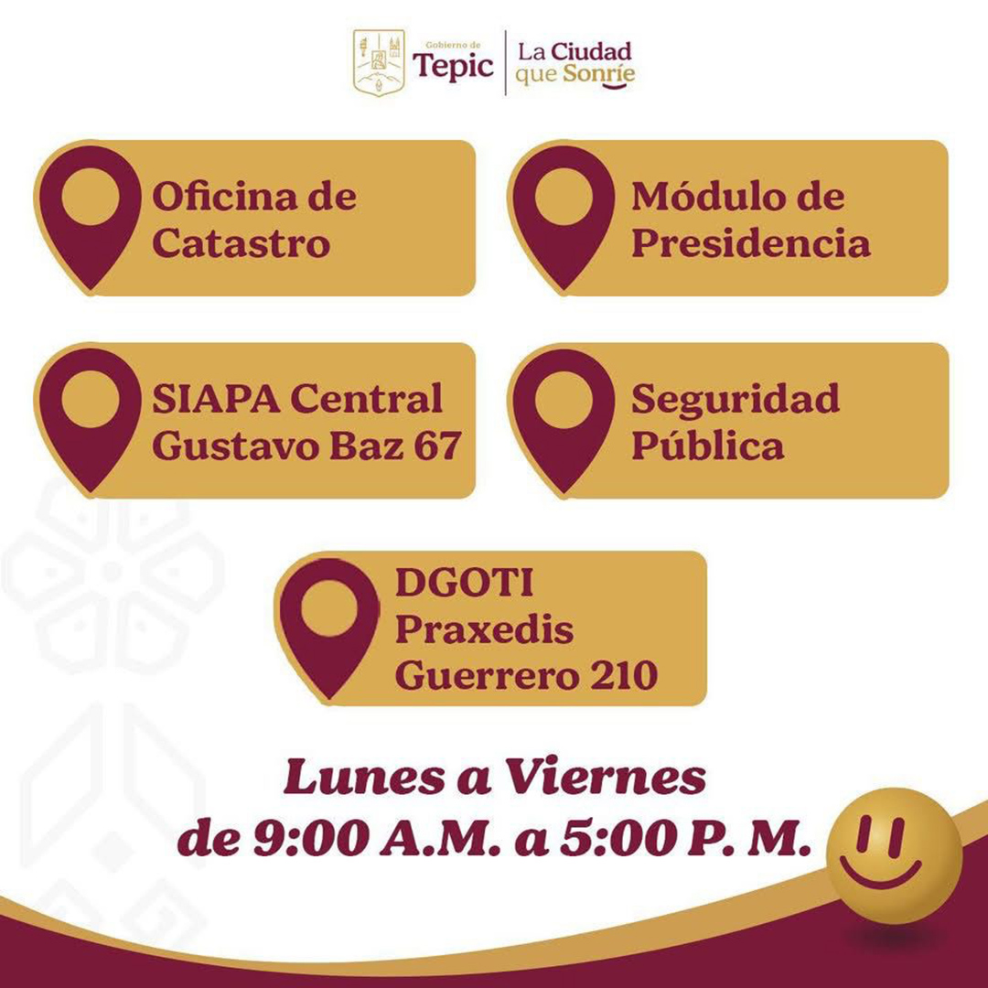 **Gracias al impulso de la presidenta municipal Geraldine Ponce para apoyar la economía de las familias de Tepic. Puedes pagar en cualquiera de los módulos.