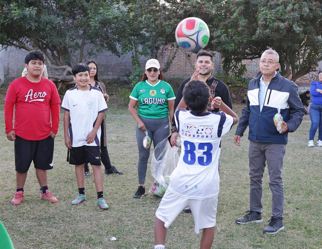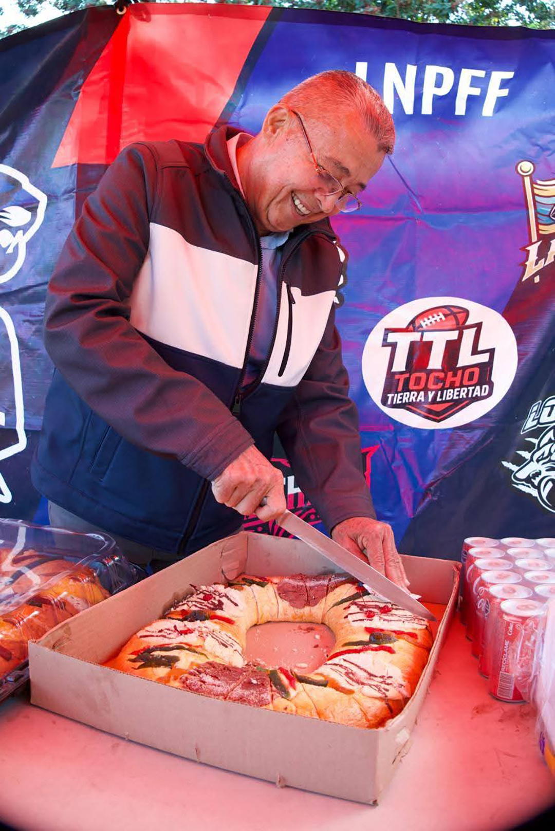 POR OTRO LADO, SURGIÓ LA INICIATIVA DE LLEVAR UNA ROSCA DE REYES a nuestras jugadoras de la Liga Nayarita Pro Flag Football. Entre charlas lo comenté con mi amigo el diputado Luis Enrique Miramontes, quien me dice: Yo se las llevo, hermano, y cumplió. Llegó con tres rosconas y refrescos, lo que nos permitió invitar también a nuestros vecinos que entrenan soccer en el mismo espacio, en el Campo La Laguna.