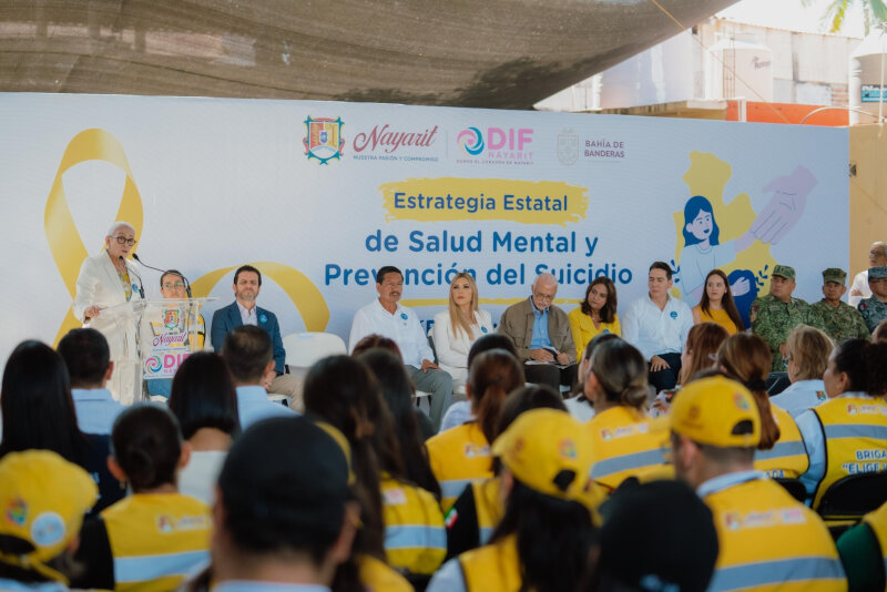 Con el objetivo de fortalecer la atención a la salud mental y dar seguimiento oportuno a situaciones de riesgo, el gobernador del estado, Miguel Ángel Navarro Quintero, junto a su esposa, la presidenta del Sistema DIF Nayarit, doctora Beatriz Estrada Martínez, encabezó en San Vicente, municipio de Bahía de Banderas, el arranque de la etapa municipal de la Estrategia Estatal de Salud Mental y Prevención del Suicidio Elige Vivir.