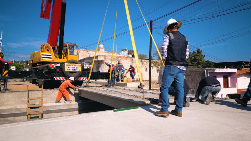 El mandatario estatal informó que este lunes se colocaron dos de las cuatro trabes de concreto que integrarán la nueva estructura, avanzando conforme a lo programado. El nuevo puente sustituirá al anterior, el cual se encontraba en condiciones de deterioro y representaba un riesgo para quienes transitan diariamente por la zona.