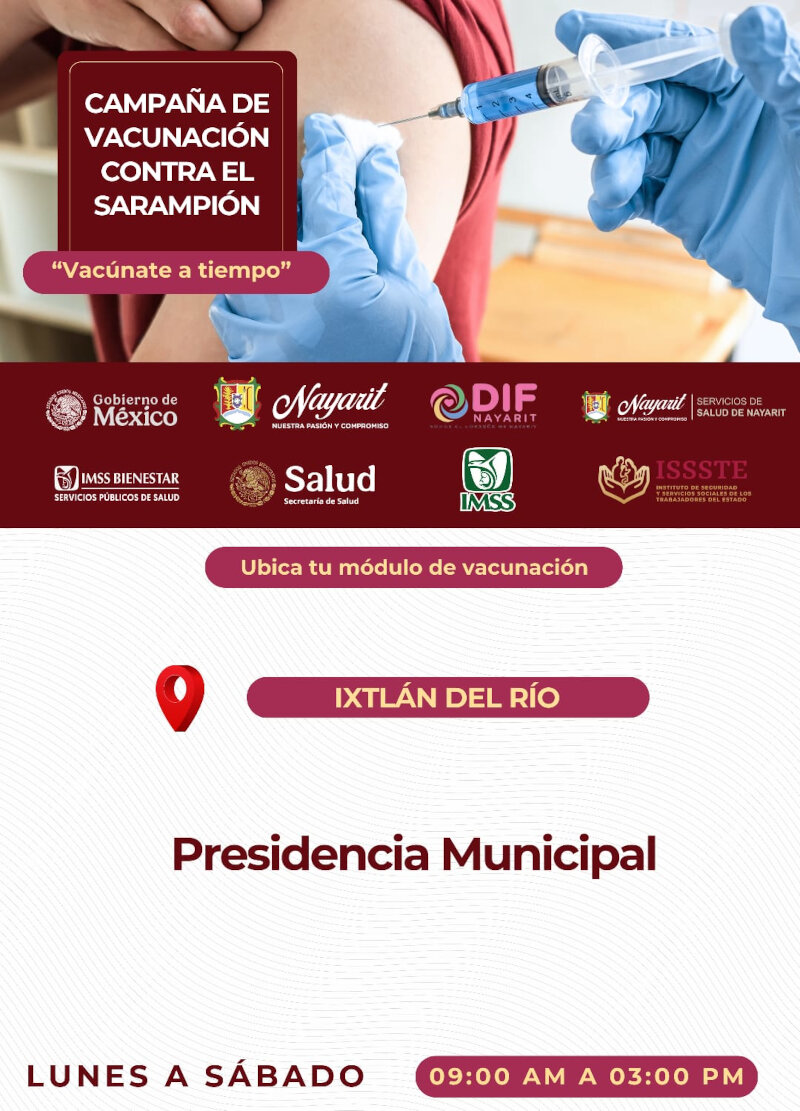 **El Gobierno del Estado de Nayarit invita a la población a acudir a los módulos de vacunación. La vacuna es gratuita, segura y está dirigida a niñas y niños menores de 9 años, así como a personas adultas hasta los 49 años que no cuenten con esquema completo o tengan dudas sobre su vacunación.