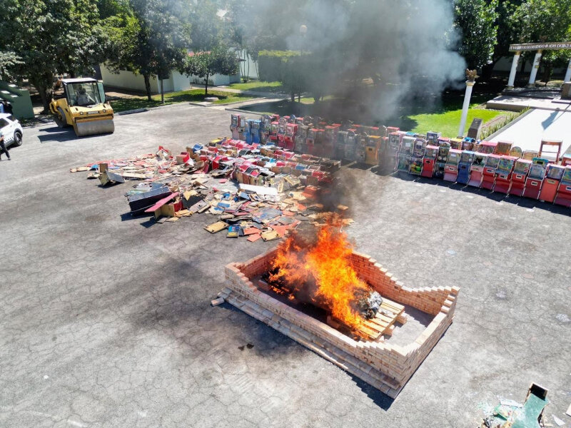 En un acto que refrenda la coordinación entre los tres órdenes de gobierno en favor de la paz y la legalidad, el gobernador del estado, Miguel Ángel Navarro Quintero, encabezó la destrucción de 242 máquinas tragamonedas, 36 objetos del delito y más de 27 kilogramos de narcóticos asegurados como resultado de diversos operativos interinstitucionales en la entidad, acción realizada en las instalaciones de la Décimo Tercera Zona Militar.