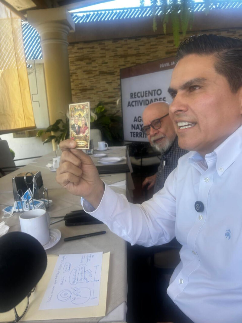 ASEGURA EL SENADOR QUE LA POLÍTICA ES DE TIEMPOS y no hay sorpresas, sólo sorprendidos y sabiendo que va a ganar el que le meta más disciplina y cometa menos errores, él sigue en lo suyo. Ya los tiempos y quienes deciden dirán qué candidatura o rumbo agarrará Pavel, pero por lo pronto, va adelantado, marcando agenda y lo sabe, además que está protegido con su arma secreta una estampita coqueta del Peje y Sheinbaum con emblemas representativos del país y la 4T, que se los guarda en el bolsillo izquierdo, muy cerca del alma y el corazón, para alejarlo de todo mal y todo demonio cabrón.