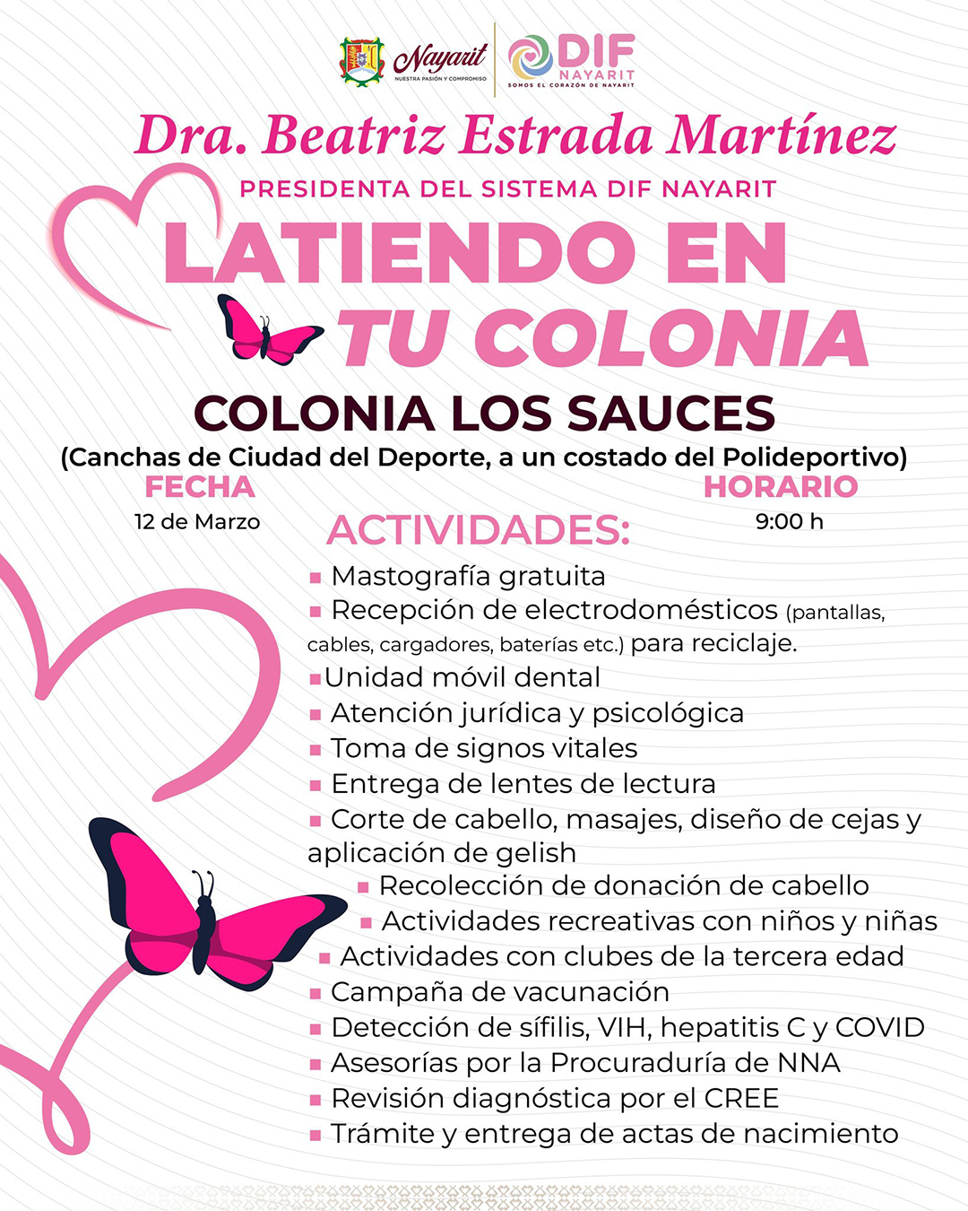**Beatriz Estrada acerca la gira Latiendo en Tu Colonia para brindarte servicios médicos, entrega de lentes de lectura, cortes de cabello, atención jurídica, apoyo psicológico y más, completamente gratis para ti y tu familia.