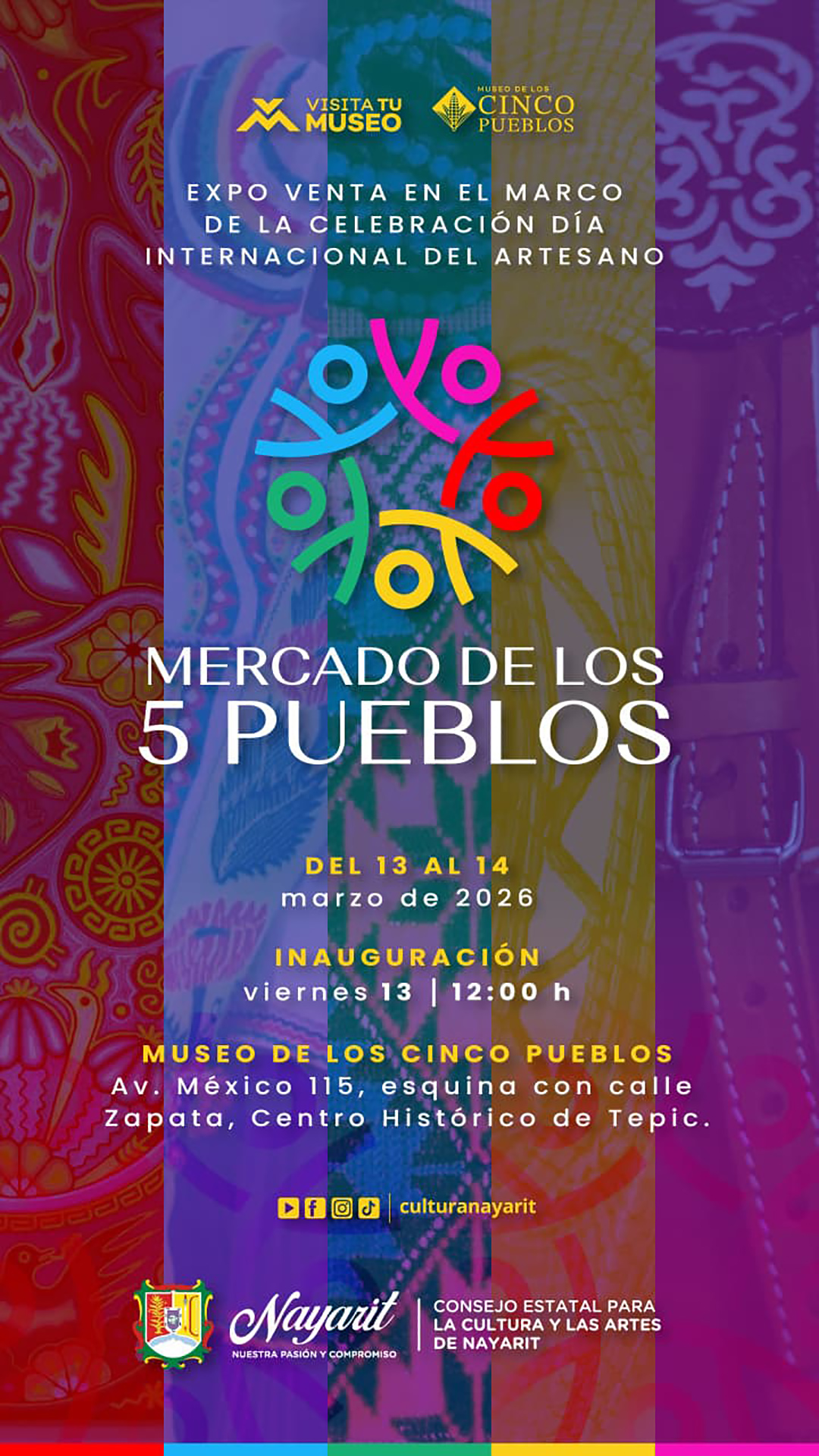 **El Gobierno de Nayarit, a través del CECAN, te invita a celebrar el Día Internacional del Artesano, en el Mercado de los 5 Pueblos, un espacio dedicado a reconocer el talento y la tradición artesanal de Nayarit.