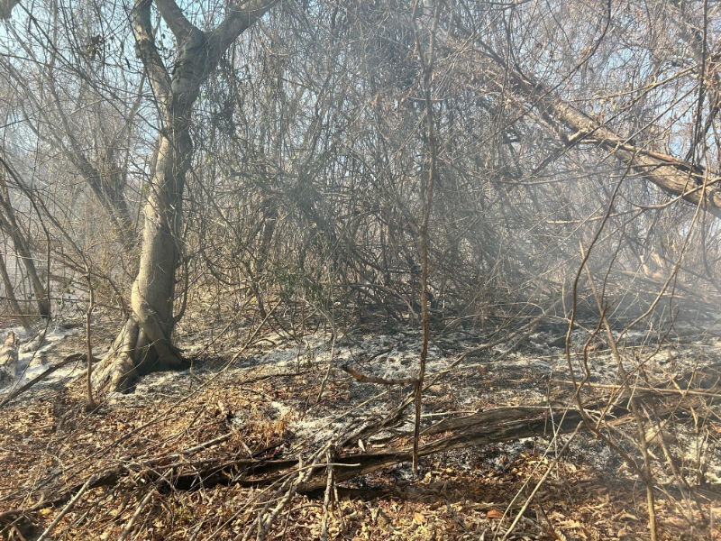 Como parte del operativo, se realizan recorridos a pie tierra para identificar puntos activos de fuego y efectuar barridos con herramienta manual, con el objetivo de eliminar focos que pudieran reactivarse y evitar la propagación del incendio hacia otras zonas.