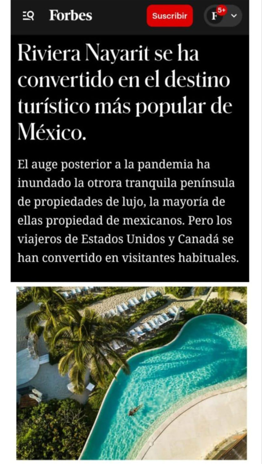 https://www.forbes.com/.../rivieria-nayarit-has-become.../ al confirmar que Nayarit avanza por el camino correcto promoviendo un turismo sustentable que fortalece la identidad y amplía las oportunidades para las familias nayaritas.