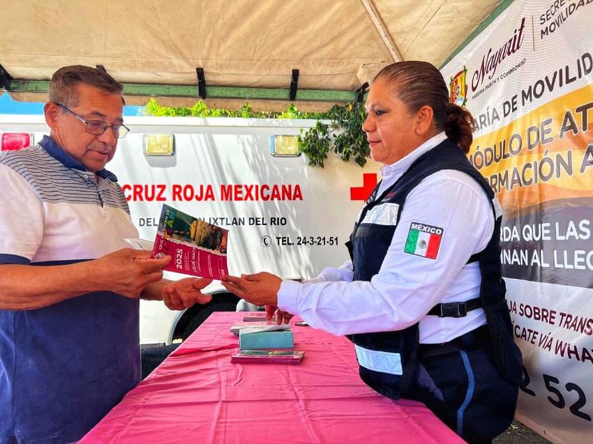 Destacó que más de 120 agentes de Movilidad se encuentran desplegados en carreteras y zonas turísticas, desde playa Novillero, en Tecuala, hasta Bahía de Banderas, realizando labores de orientación y auxilio vial ante el incremento en la afluencia vehicular.