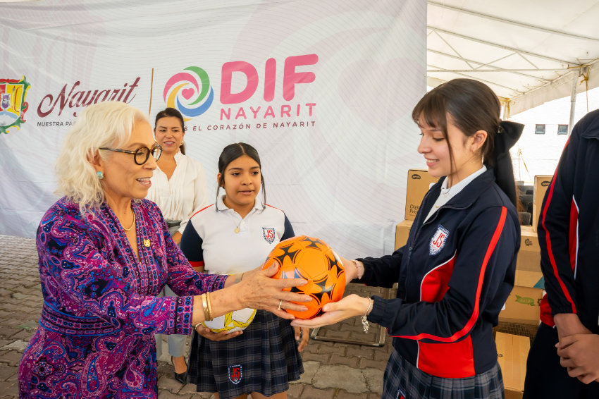 Generar entornos educativos con calidad y calidez es una prioridad para la presidenta del Sistema DIF Nayarit, doctora Beatriz Estrada Martínez, quien encabezó la entrega de apoyos en especie a la escuela primaria Ignacio Manuel Altamirano, de Ixtlán del Río, y a la secundaria Justo Sierra, de Tepic.