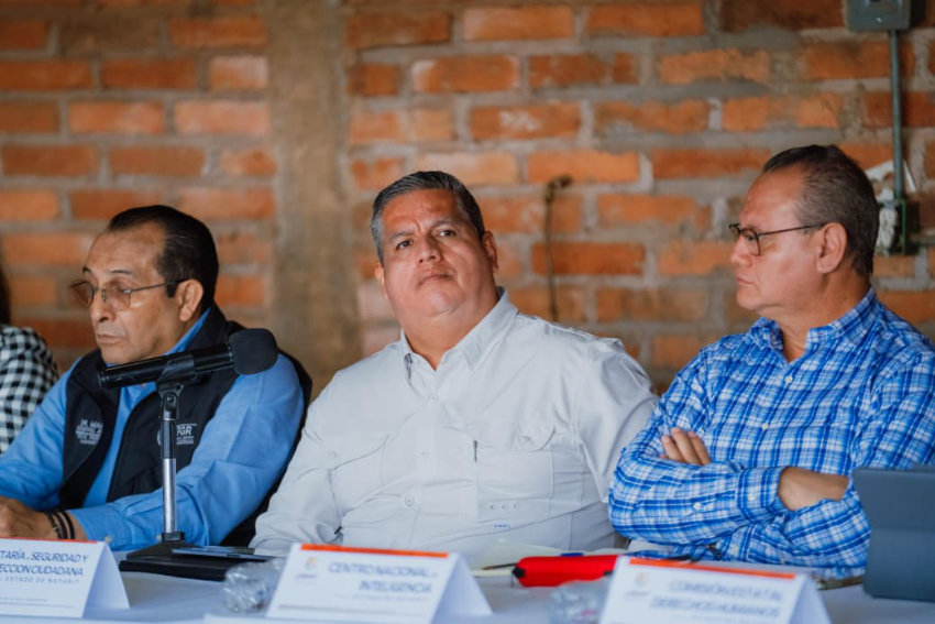 El gobernador del estado, Miguel Ángel Navarro Quintero, encabezó la sesión de la Mesa Estatal de Construcción de la Paz y la Seguridad en la comunidad de Santa Teresa, municipio de Del Nayar, con la presencia del General de División E.M. Porfirio Fuentes Vélez, comandante de la V Región Militar, y del General de División G.N. E.M. José Martín Luna de la Luz, de la Guardia Nacional, así como de autoridades de los tres órdenes de gobierno.