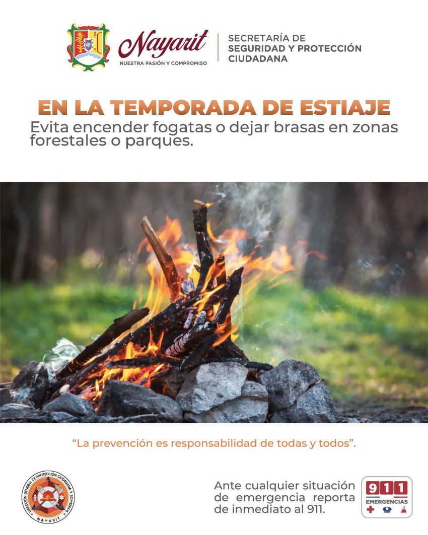El Gobierno de Nayarit, a través de la Secretaría de Seguridad y Protección Ciudadana, comparte recomendaciones para prevenir incendios durante la temporada de estiaje: