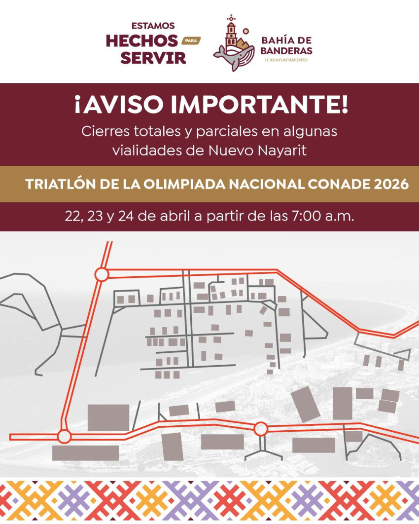 🚦 ¡Atención, Bahía de Banderas! Este 22, 23 y 24 de abril, prepárense para los cierres parciales y totales en algunas vialidades de Nuevo Nayarit. 🏃♀️