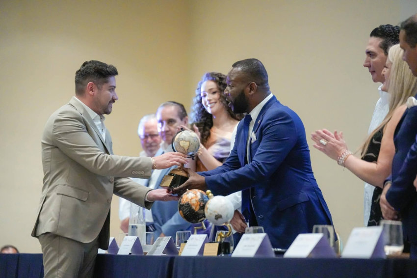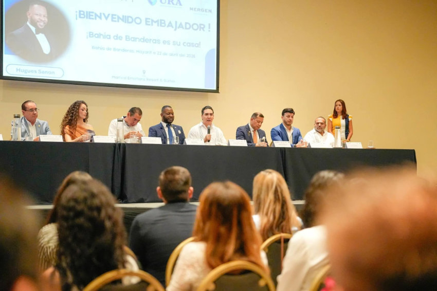 El presidente municipal de Bahía de Banderas, Héctor Santana, recibió un reconocimiento internacional por los avances en infraestructura logrados durante su administración, en un acto encabezado por el embajador Hugues Sanon.